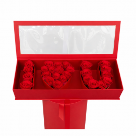 Heart-shaped Dutch truffle photo cake, beautifully paired with a fresh double rose bouquet
