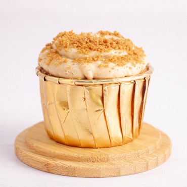 Vanilla cupcake topped with lotus spread frosting garnished with crushed lotus biscuits..